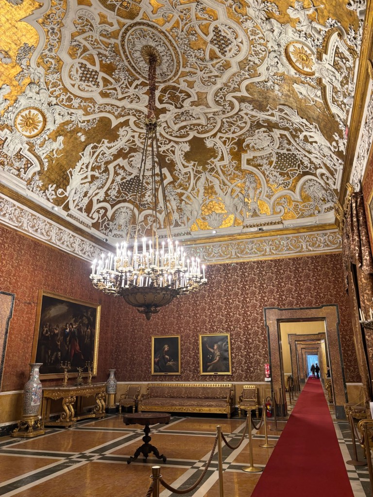 What’s better is that, it being more or less still lunchtime, I had the place pretty much all to myself, only sporadically running into other visitors. I saw centuries of Neapolitan history pass, as the route took me from the older rooms to the newer ones, ending with 19th century paintings that looked surprisingly modern in comparison with the earlier ones. Of note, in some ceiling frescoes there are annotations entirely in Spanish, a reminder of who owned the palace.