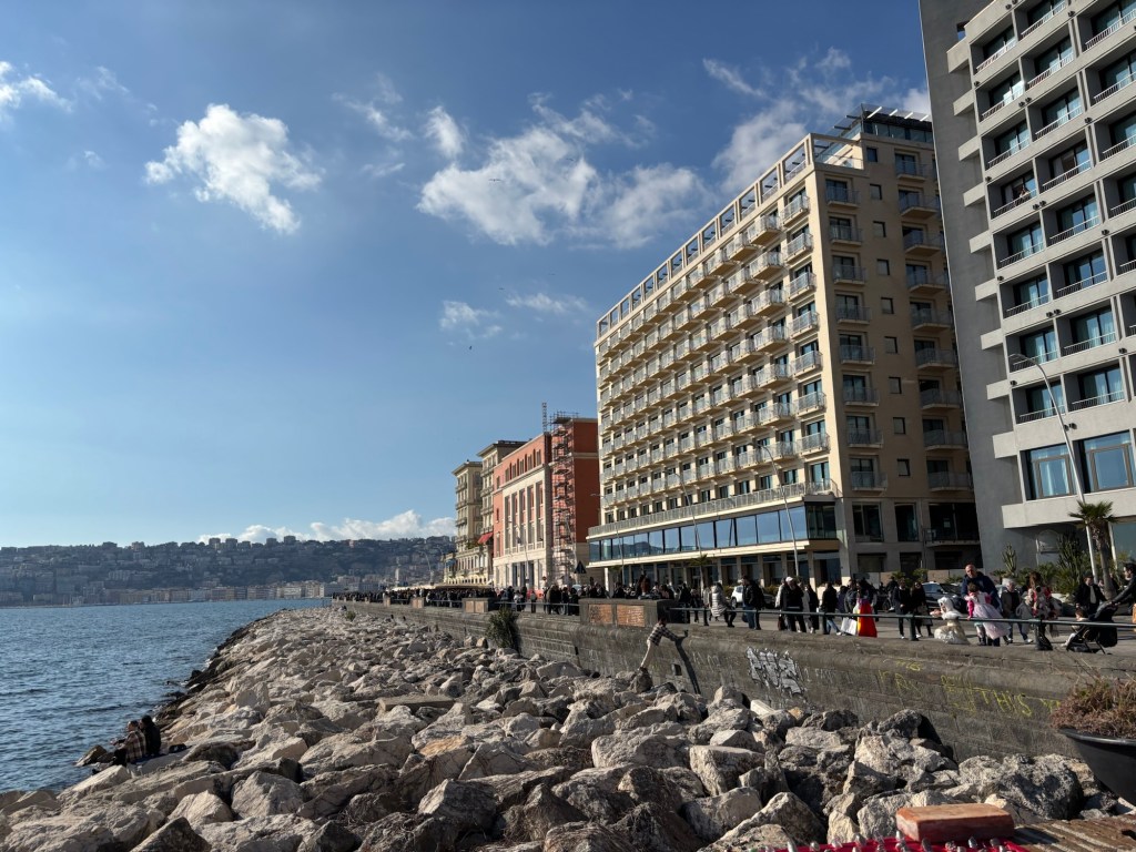 This was it for my cultural plan for the afternoon. When I left, I simply walked south to the sea, and around the bend to Via Partenope, where I was equal parts happy to see the beautiful blue sea and horrified to find untold throngs of people, locals and tourists alike, occupying every square inch of the wide seaside avenue. Turns out this is the real touristy thoroughfare in the city, making Via dei Tribunali look like a side alley!