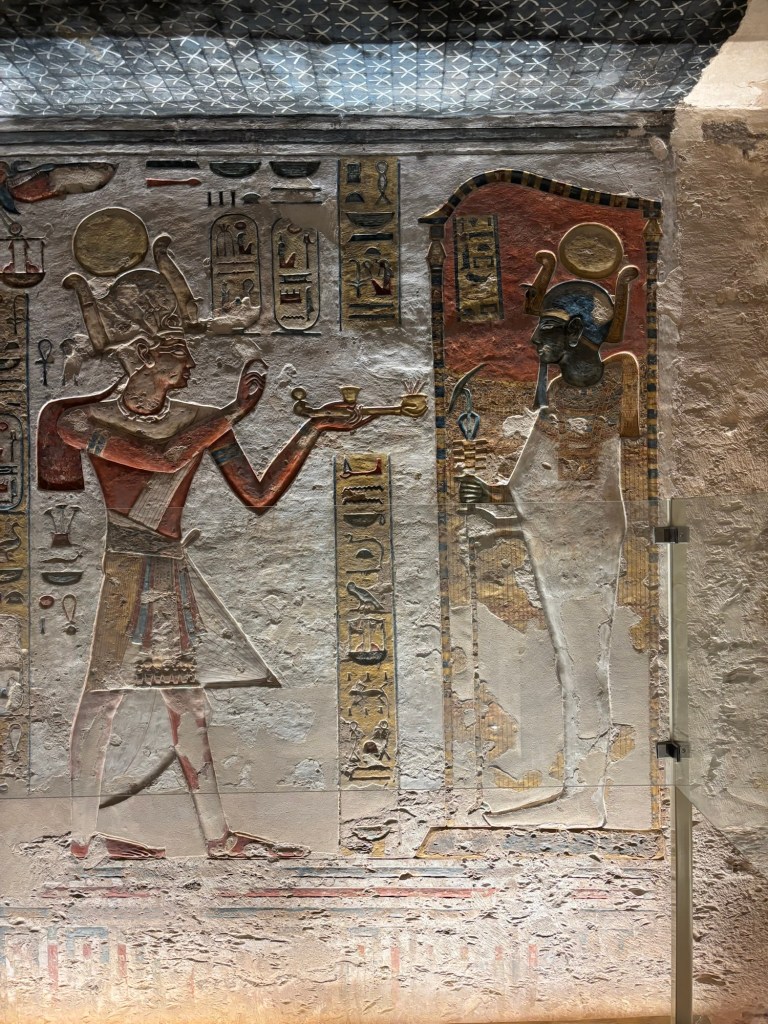 Against all expectations, the inside of the underground tombs was suffocatingly hot and humid; maybe it’s a European thing to expect a cellar to be cooler than the surface? But the discomfort is definitely worth it: it is an otherworldly experience to walk down the length of a 200 meter long hallway still displaying the vibrant colors and beautiful depictions it did three millennia ago. It’s like time travel, bridging a chasm that spans centuries, countries, cultures…