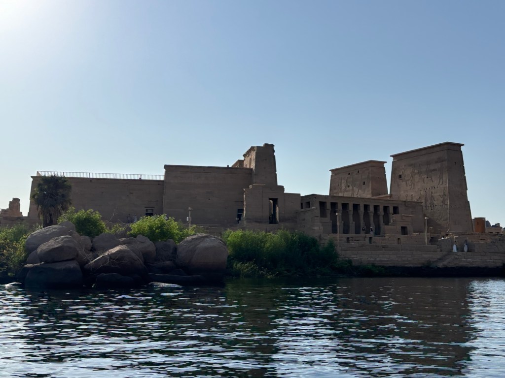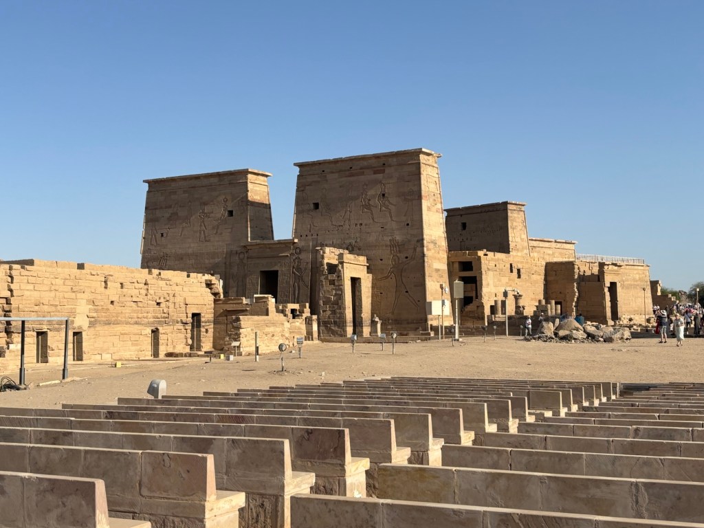 Our main mission for today was to visit the Temple of Philae, a storied temple that was built two thousand years ago, during the reign of the Greek pharaohs, in honor of Isis, the most revered Egyptian goddess. It is notable because it was built on an island in the middle of the Nile, but listen to this: when the Nile dams were built, in 1902, the water levels rose and flooded the temple in such a way that more than half of it stayed underwater for the next seventy or so years, at which point it was disassembled from the now submerged Philae island into 40,000 blocks and reassembled on the island of Agilkia, just a few meters away, where it now sits. So, proportionately to its chronology, the Temple of Philae has only been at its current location for the blink of an eye!