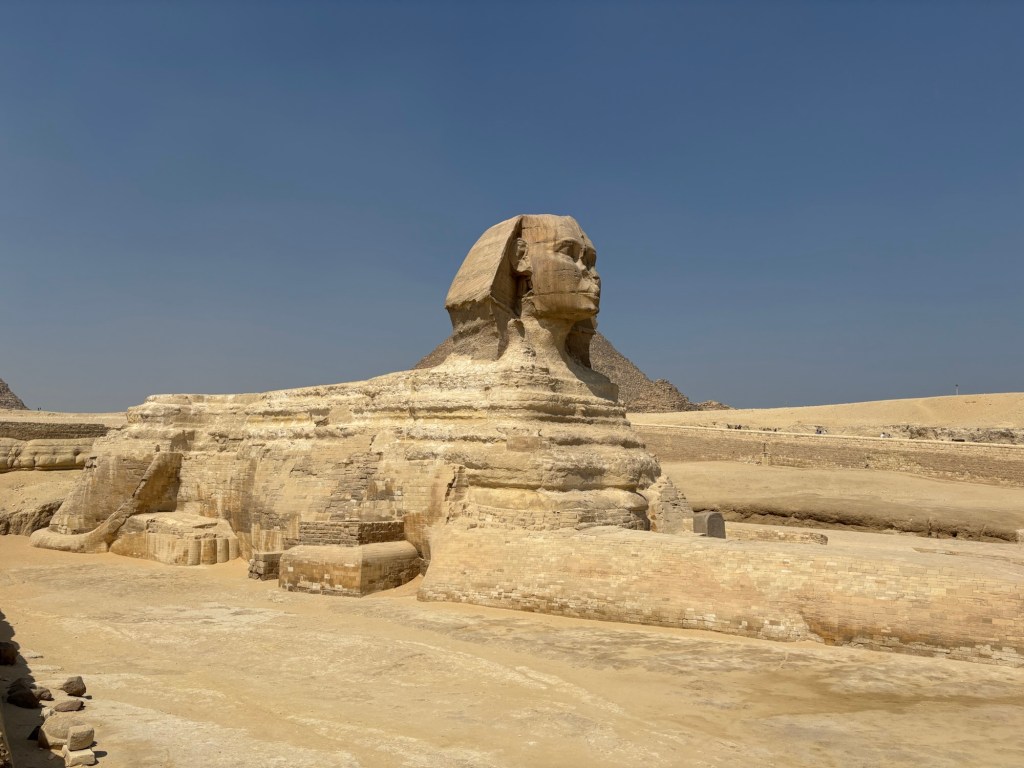 After making bus stops at each of the three pyramids, I was startled to see the Sphinx appear into view. I’d been so engrossed by the pyramids and the surreal feeling of realizing what felt like a fantasy that I completely forgot about the sphinx!
