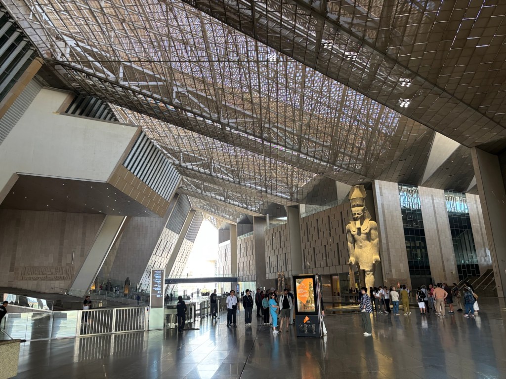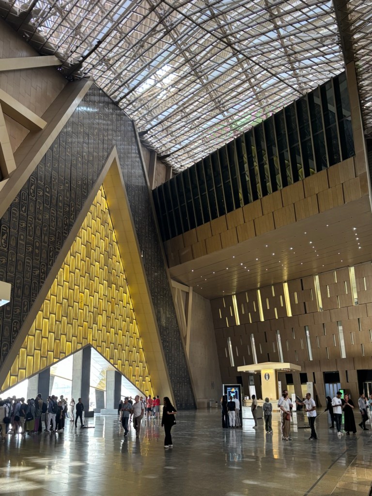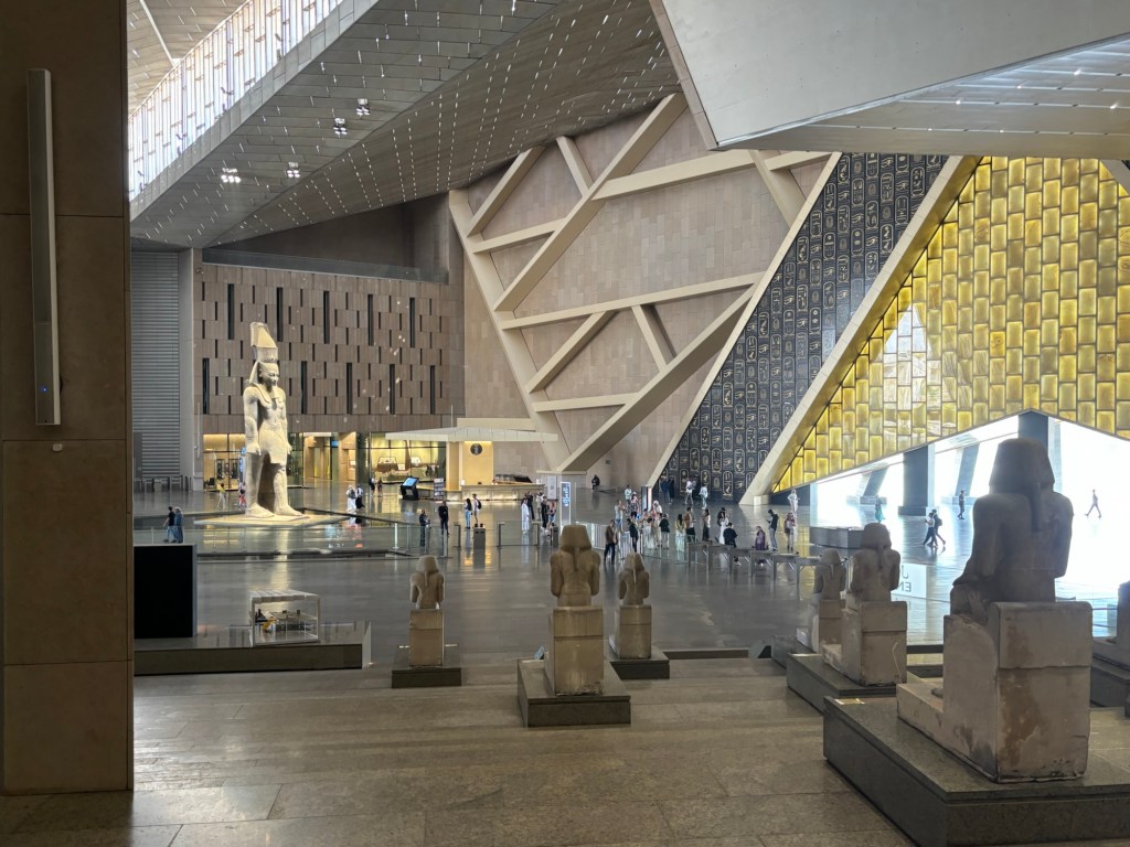 I decided to start with the Grand Egyptian Museum, the brand new archaeological museum constructed a stone’s throw away from the Pyramids. It is so brand new, in fact, that it isn’t even officially open: after having been delayed for years, the GEM will be inaugurated in November, although it is open to visitors for a limited time. Nobody else in my tour group wanted to go because the Tutankhamun galleries aren’t open yet (they still need to transfer the exhibits from the old museum) but I was super excited to go partly because we’re in this curious timeframe where we’re lucky enough to have arrived after it opened but before it closes again in a couple of weeks to prepare for the inauguration. I will get to say “I went to that museum before it even opened!”.