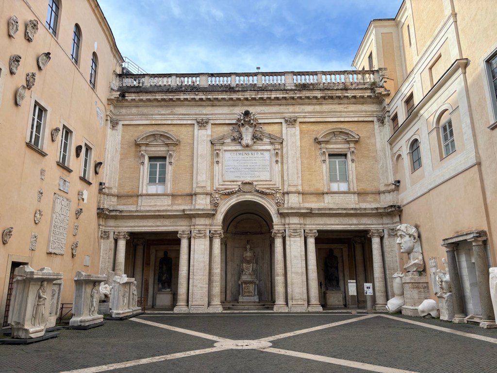 I did start with a bus, to go to the first item in my itinerary for today: the Musei Capitolini, the great archeological museum at the top of the Capitol Hill. When I got there, at around 10:30, there were people milling about in the square but absolutely no one lining up for tickets or inside the museum’s courtyard. I have got so accustomed to the crowds that the emptiness felt wrong: was it closed? Was I in the wrong place? Did I have to go through a different entrance? But no, it was all good, there was just almost nobody there, save for the occasional tour group!